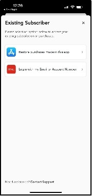 進入底部選單中的“選項”,然後點擊 ”訂戶登入”或 ”恢復購買”